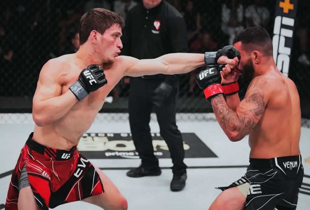 Second, his escapes are like magic tricks. In his fight against Mads Burnell at UFC 251, Burnell locked a deep guillotine. Most fighters would panic, but Movsar rolled his shoulder, twisted his hips, and slipped out as if he were stepping out of a tight subway carriage. The crowd gasped, the commentators shouted “What a Houdini!” – and Burnell was left staring at an empty mat.